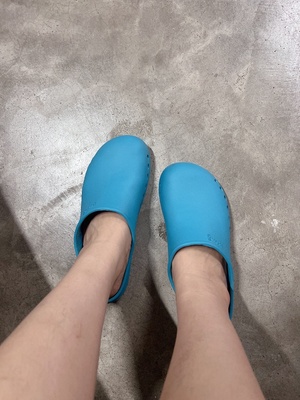"Giày có độ mềm và cứng vừa phải nên chân bạn sẽ không có cảm giác mỏi dù đứng lâu và còn chống trơn trượt rất tốt."