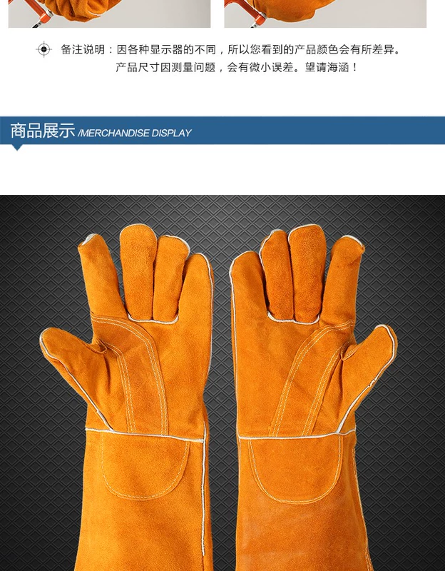 Găng tay hàn da bò bảo hộ hàn dày chịu nhiệt độ cao cách nhiệt chống bỏng làm vườn chống chích găng tay dài ngoài trời găng tay thợ hàn gang tay han